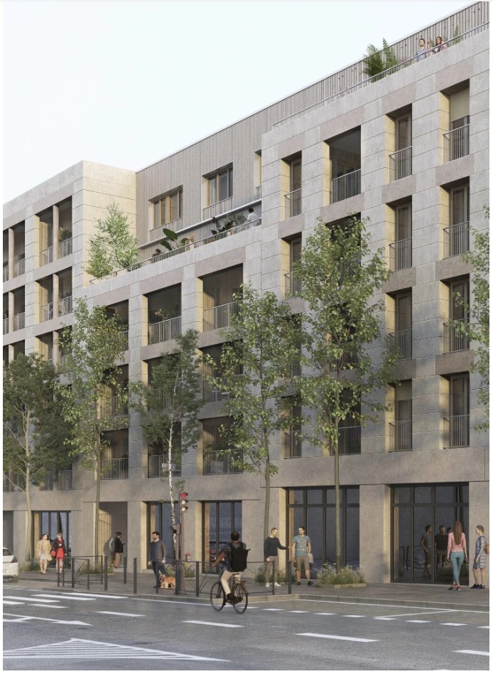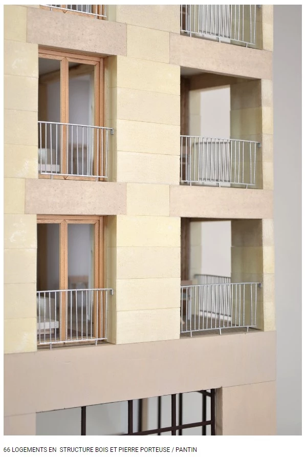 68 logements et centre médical, Pantin. Construit en pierre massive et structure bois.