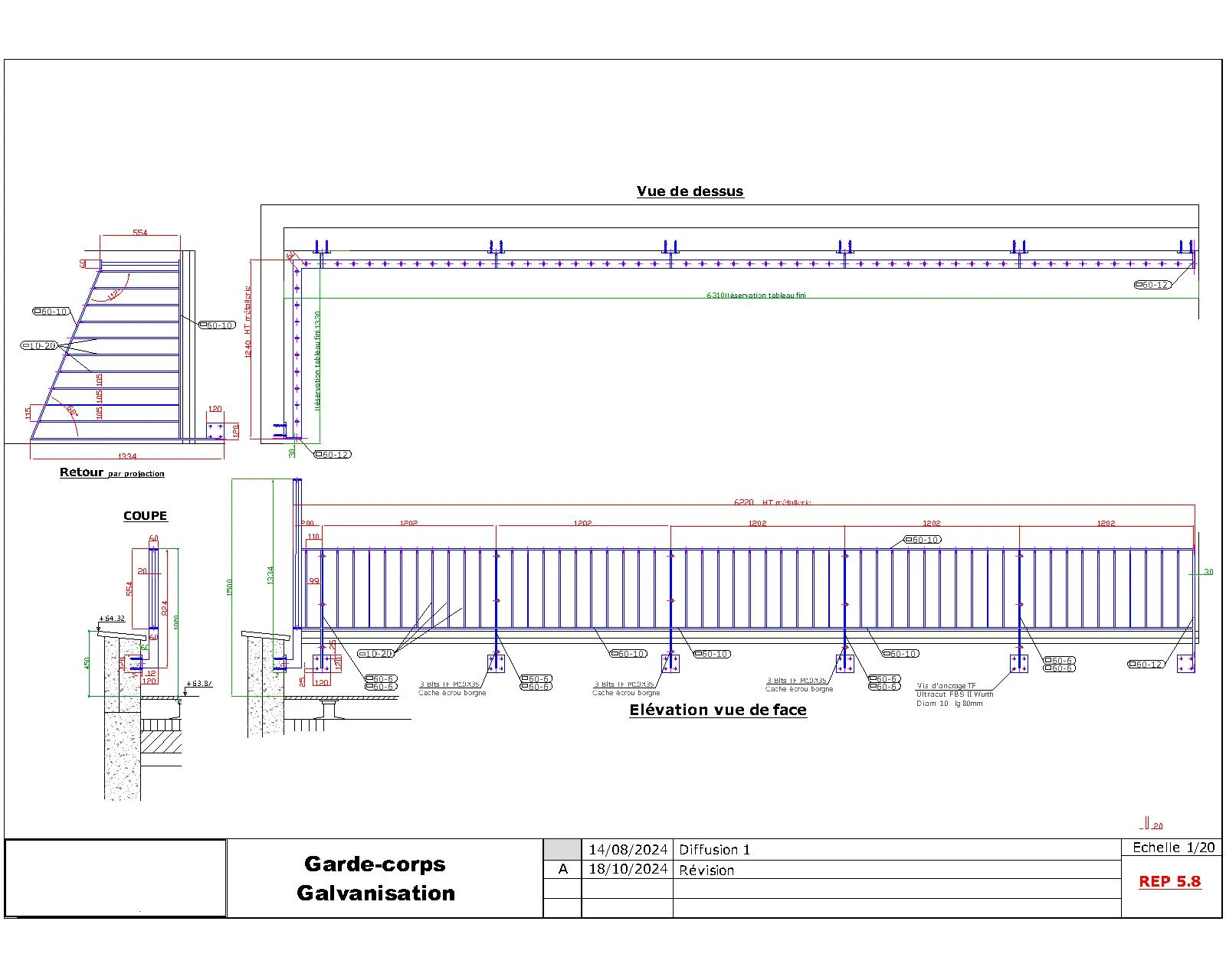 Conception des 116 tangons métalliques (tous différents) des résilles béton – plan architecte, plan de fabrication et note de calcul.