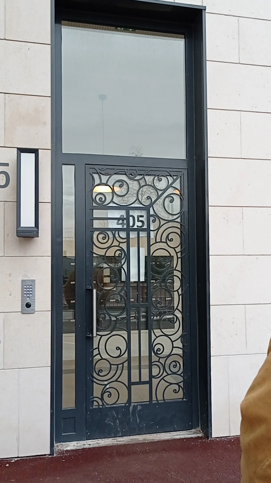 Menuiserie Manesman série 50 hermétique + tôle découpée au laser, type Art déco.